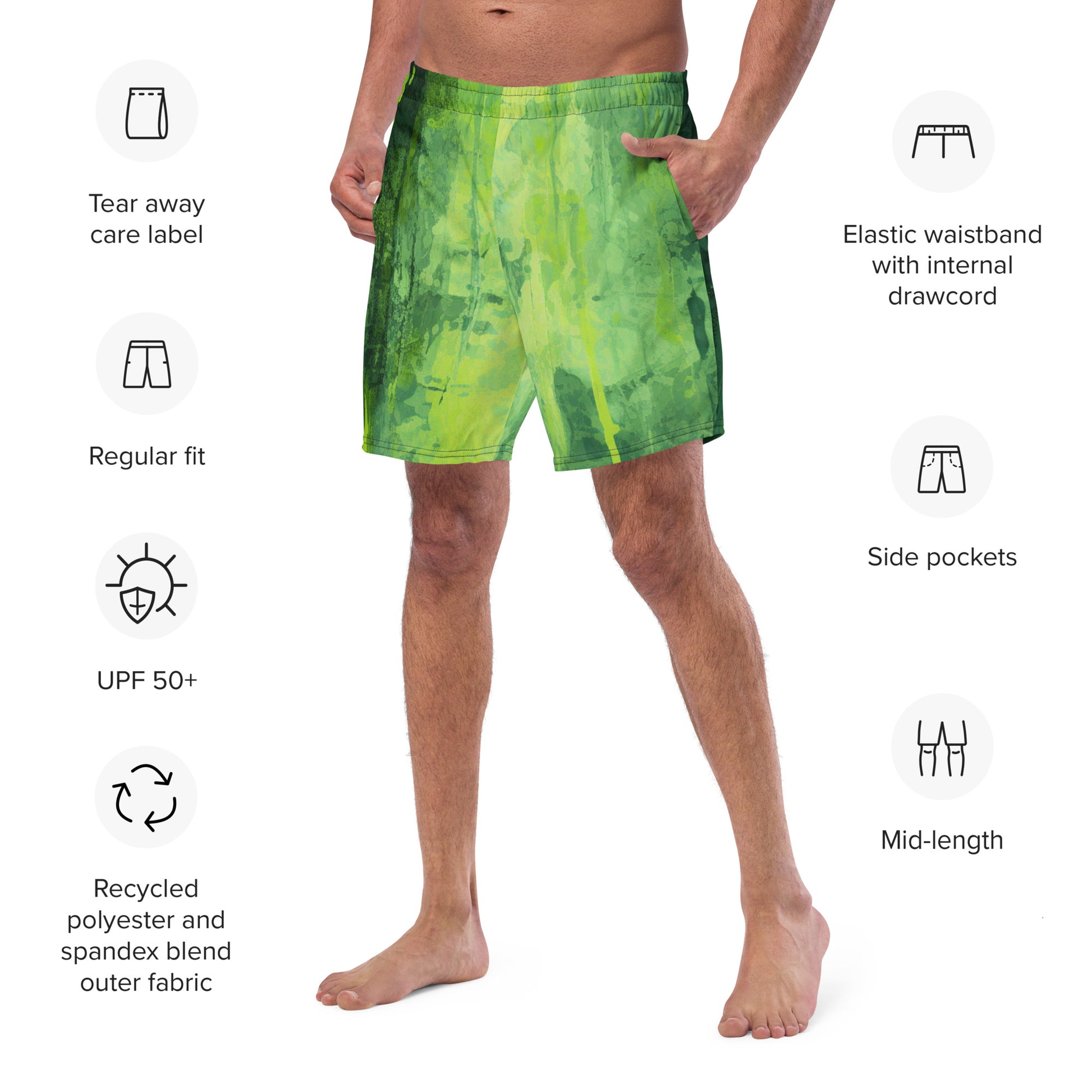 Green screen men's swim trunks